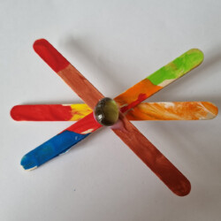 Basteln – Kunterbunte Kreisel aus Holzstäbchen