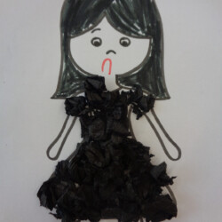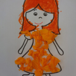 Gestalten Sie die Umrisse eines Mädchens für Ihr Kind vor oder lassen Sie es allein die Umreisse malen. Danach kann Ihr Kind entscheiden, ob es eine Gold- oder eine Pechmarie gestalten möchte. Danach nimmt Ihr Kind das jeweilige Krepppapier, reißt sich kleine Teile ab und formt zwischen Daumen und Zeigefinger daraus kleine Kügelchen. Mit diesen Kugeln wird das Kleid des Mädchens verziert. Abschließend kann Ihr Kind sein Mädchen mit bunten Stiften verzieren.